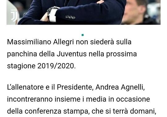 Con una nota sul sito ufficiale la Juventus comunica che Allegri non sarà l’allenatore della