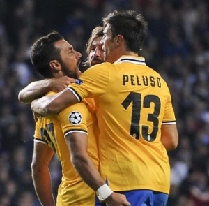 Nel primo match della fase a gironi di Champions, la Juve pareggia 1-1 a Copenaghen al termine di un match a lungo dominato. In Danimarca, la squadra di casa va in vantaggio al 14′ con Jorgensen, lesto ad anticipare Chiellini. La squadra di Conte reagisce nella ripresa e trova l’1-1 con Quagliarella (54′), bravo a girare di sinistro un assist di Peluso. I bianconeri spingono fino alla fine a caccia dei 3 punti, ma il portiere danese è decisivo. Nell’altro incontro del girone il Real Madrid batte in trasferta 6-1 il Galatasaray.