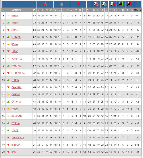 Classifica 36a giornata Serie A 2010-11