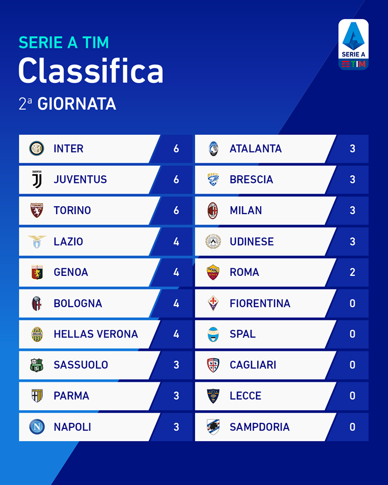 Previous Classifica 1a Giornata Serie A 2019-2020